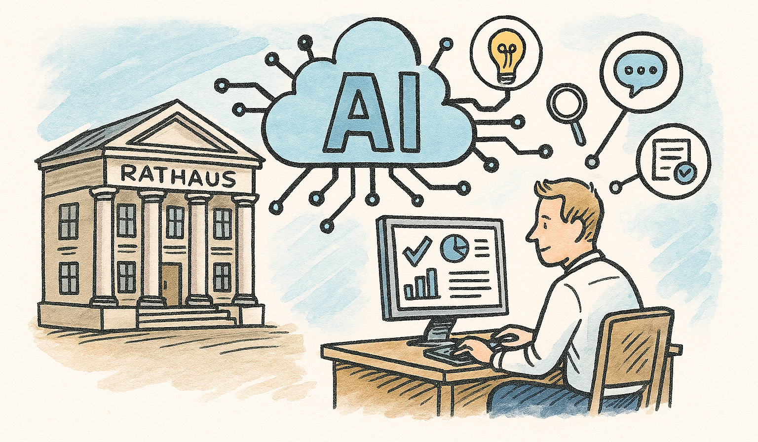 Digitale Technologien verändern die öffentliche Verwaltung grundlegend. Künstliche Intelligenz (KI) ist dabei ein Werkzeug, das nicht nur Prozesse beschleunigen, sondern auch die Qualität von Dienstleistungen verbessern kann. Für kommunale Verwaltungen bedeutet dies: Routinetätigkeiten lassen sich automatisieren, komplexe Daten können leichter ausgewertet werden, und Bürgerinnen und Bürger erhalten schneller Zugang zu Informationen. Damit KI sinnvoll eingesetzt werden kann, braucht es eine